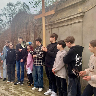 Vakar, Lielajā Ceturtdienā, Rīgas Katoļu ģimnāzija pulcējās uz ikgadējo Krustaceļa gājienu, lai, sekojot četrpadsmit stacijām, atcerētos Kristus upuri un ielūkotos savas sirds klusumā. Katru pieturu skolēni bagātināja ar lasījumiem, lūgšanām un pārdomām.